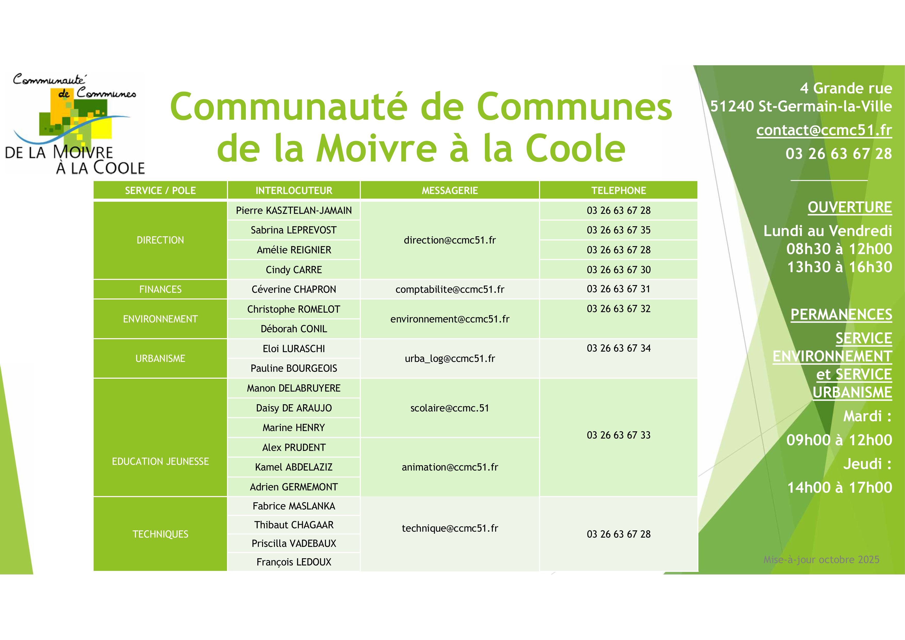 COMMUNAUTE DE COMMUNES DE LA MOIVRE A LA COOLE
